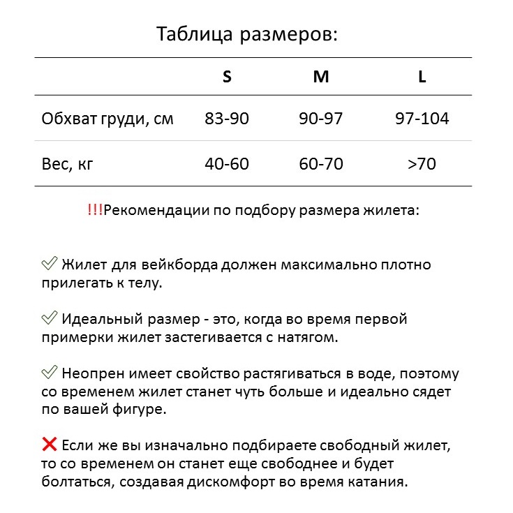 Безопасность: Жилет обеспечивает высокий уровень безопасности благодаря использованию высококачественного неопрена, который обладает отличными водоотталкивающими свойствами и обеспечивает хорошую плавучесть.